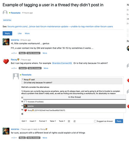 See: forums.garmin.com/.../since-last-forum-maintenance-update---unable-to-tag-mention-other-forum-users