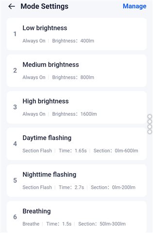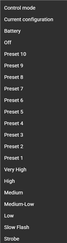 - Other devices: Select the "Light modes" menu and post which numbers are displayed in the menu and what mode each menu item represents when selected