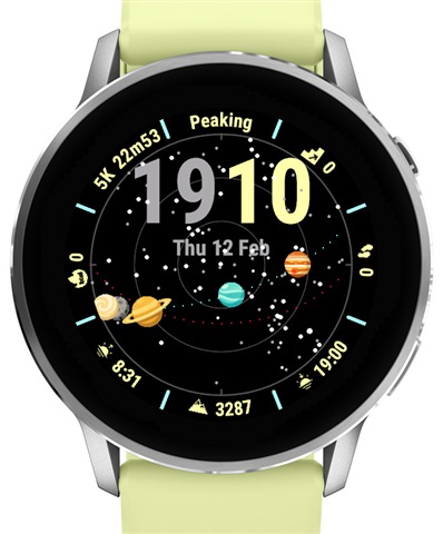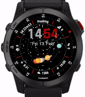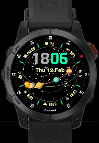 For the last month I was working on a watch face in my spare time: Planetarium. My hobby is astronomy, so it's a very astro oriented watch face. Besides the time and 8 fully customizable data fields it shows the current position of the sun, the moon, the planets and the 300 brightest stars, as visible from your location.