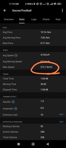 When I track my football activities, most of the time I can't find my heart rate records, also my max speed is not correct.