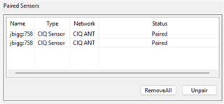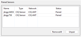If I pair multiple sensors, these show up correctly in the Paired Sensors window: