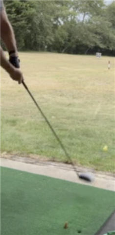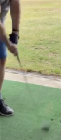 It is impossible to see the club head at impact or the club path at such a low resolution and frame rate.