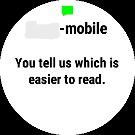 I normally wear reading glasses, but I usually don't when I am wearing my F6x. Accordingly, the readability of the fonts for things like notifications and calendar are very important to me. The F6x is good enough for me, but just barely.