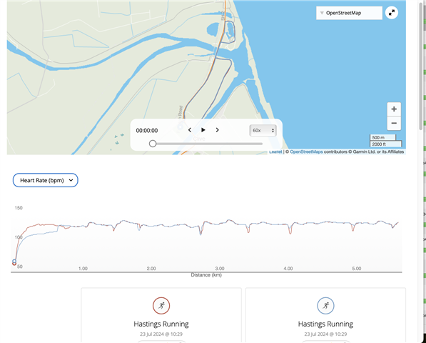 • Use two watches one connected to a strap the other not. Sync both activities to GC. On the GC interweb you can choose to compare up to 4 activities. Click into the small cog to see that option. Not sure which is which without running the comparison again but I’d guess the red is the strap as it responds quicker at the start.