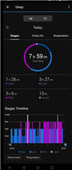 *On-device sleep calculations have now been added. This information can only be viewed via the Sleep widget. Please follow included instructions above to add the widget. On-device sleep calculations can be viewed in Garmin Connect Mobile and Garmin Connect Web when using beta software 9.92 and above. A few notes concerning on-device sleep and how it is viewed in GCM and GC-Web: