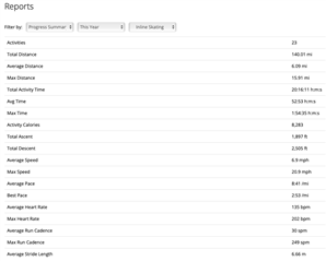 The Garmin Connect Web's Reports section has a general and customizable report on Inline Skating for whom might find it useful.
