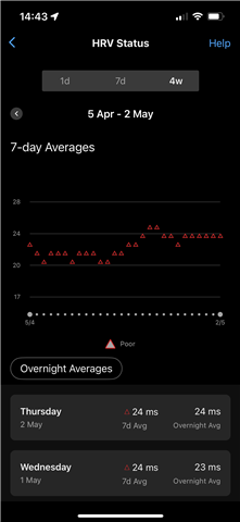 However, Garmin seems to not accept my differentiation in that area. It has never set my baseline and keeps marking it as "poor", basically telling me that I am never fully recovered, flashing those red alerts at me every day.