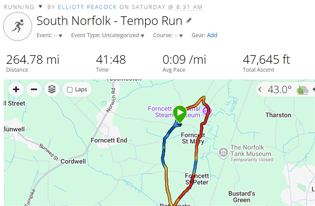 The next run was 11.03 miles, but showing as 547 miles?!!?!?