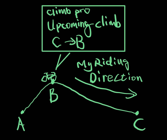 My EDGE did not pop up ascend A to B, BUT it pop up ascend C to B ( which is my opposite riding direction ) when i arrives B.