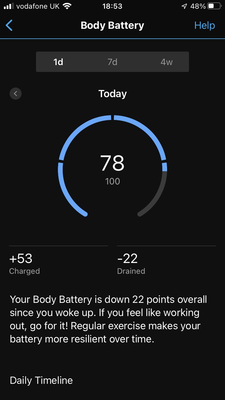 My Venu 2 plus often shows the front panel for body battery as a different Body status number to the rear page (when you tap the front page). In this case 78 is the correct figure.