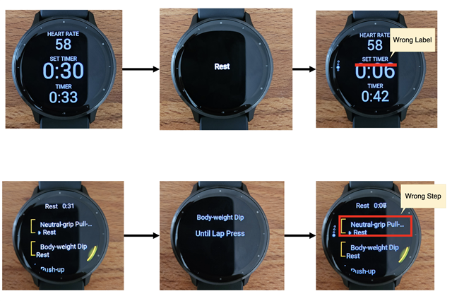 I’m currently testing out structured layouts but there seems to be a bug which results in the textlabels / pages not getting updated automatically when jumping to the next workout step using the pause button: