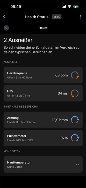 1) The Health Status in the Connect app does not display skin temperature, but all other values?