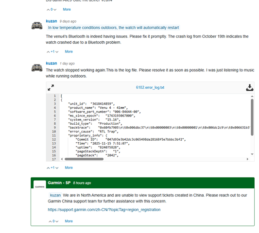 I'm really speechless about Garmin's service. If it were a hardware issue with the watch, I'd accept it if you told me this is the North American region. But it's clearly a software problem, and you're using the "North American forum" as an excuse. What was the original purpose of establishing Garmin's forums? The customer support in China also directed me to this forum to discuss the issue. Your response feels like blatant discrimination. I'm furious. I don't think you're fit for this job. Just go home, you useless piece of crap!