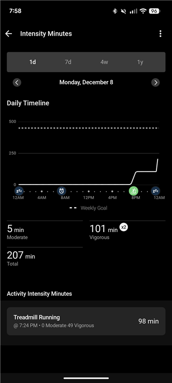 Until December 3, 2025 intensity minutes data calculated over the week was correctly reflecting activities logged and everyday life. However, in the date mentioned I noticed a spike in "intensity minutes" that is inconsistent with the activities of the day.