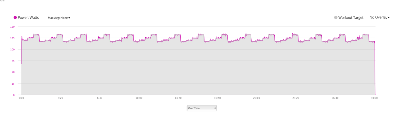 Workout notes: 15 x ( 4 x 30s blocks of custom power targets to stress-test ERG mode ) - 60 reps in total, 30mins