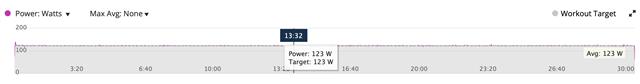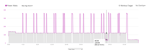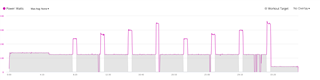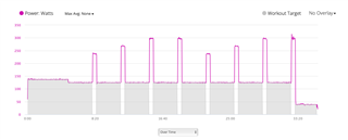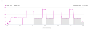 for comparison, a similar workout without any issues - the main bit is in ERG mode so when it's working there is virtually no variation in Watts :