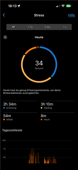 Mein Garmin FR 255 misst leider unterschiedliche Stresswerte. Einmal die Werte in Connect und einmal die der Uhr. Hinzu kommt, dass die Uhr gerne mal binnen 10 Minuten von Wert 12 zu 56 oder ähnliches springt.