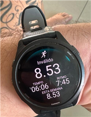 Finalizei minha corrida, e ao clicar em concluir apareceu o triangulo azul e reiniciou o relógio. Ao acessar novamente o relógio a corrida fica ''salva'' mas com o botão ''invalido'' em cima, como mostra o print. E essa atividade não esta ficando em histórico no relógio e nem sincronizada no garmin connect