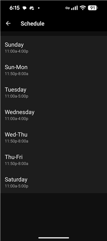Wed, Thur, Fri, Sat