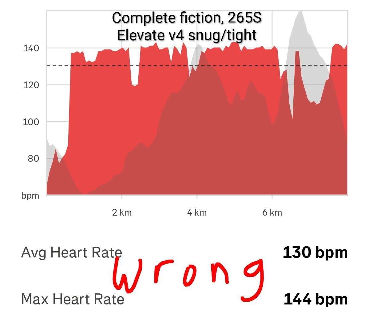 I know from experience that's 100% accurate. Here's what my 265S recorded whilst snug on my slim (16cm) wrist (and adjusted multiple times, tighter etc: