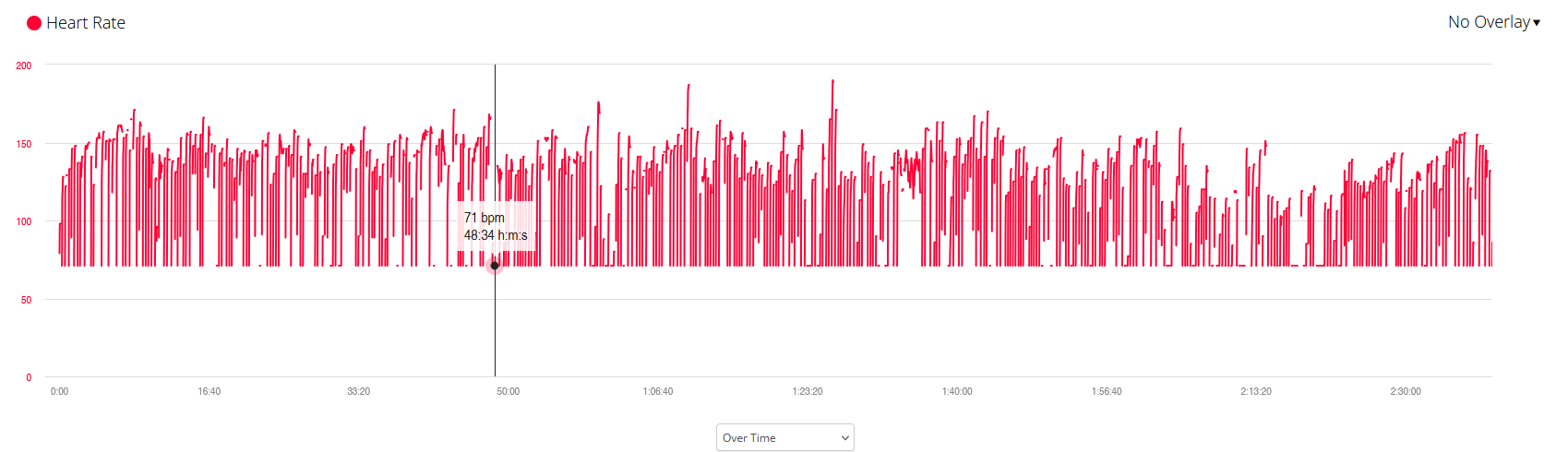 I've included images of 2 heart rate graphs below with the first image being the erratic behavior and the second being from a normal ride before this issue began. Both are recorded using an HRM Pro Plus, the watch, and an Edge 540 bike computer.
