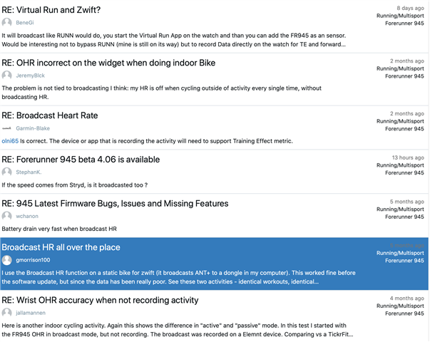 I see in these forums that many others have experienced this. It appears if I record a workout from my 945, it will show me an accurate HR, but not if I broadcast or just view in the widget.