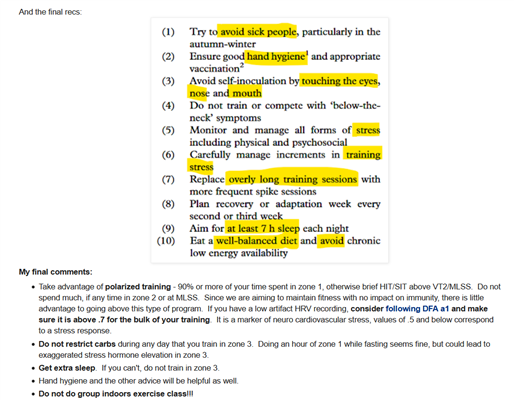 I put together a few thoughts on how to approach the next few months in relation to maintaining fitness and maximizing immune function - FYI