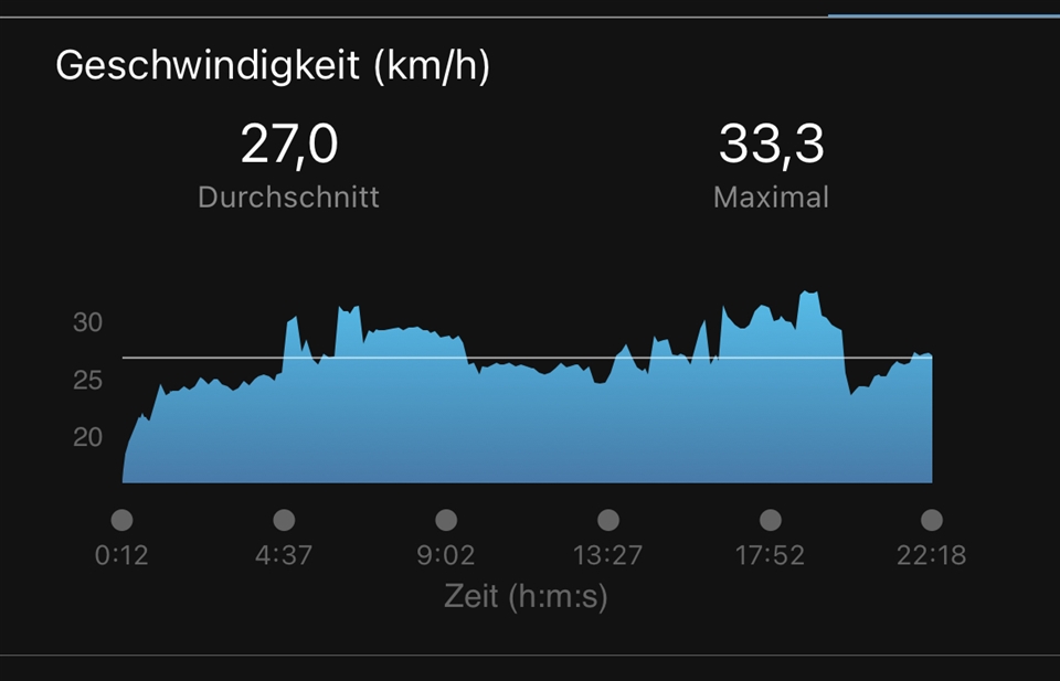 However on the "last training" widget on the watch itself, it scales the graph all the way up to 240 km/h so that only the lower ten percent of the graph are used. The scaling seems way off here.