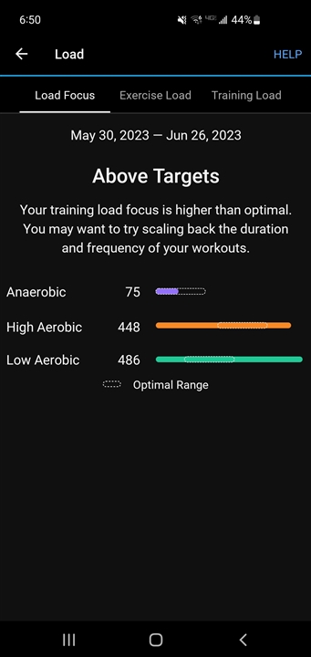 If I look at Load Focus I get "Your training load focus is higher than optimal. You may want to try scaling back the duration and frequency of your workouts."