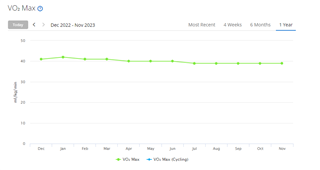 Since upgrading from the Forerunner 45 in November last year my VO2 max has remained unchanged and steady at 39.