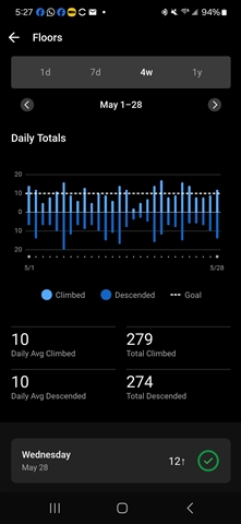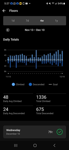 First time posting here - I always target to climb 10 floors per day, and the watch was working well at the beginning (May screenshot) but now the watch hallucinates and detect on average 50 floors on a daily basis. Sometimes I just go out and I hit 20 floors at once. I tried to clean the opening of the barometer with some solution suggested online with no success.