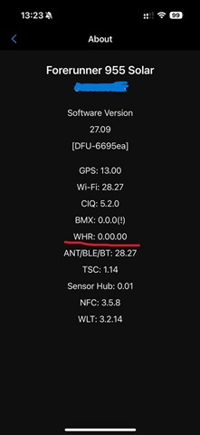 After updating my Forerunner 955 Solar to software version 27.09, I’m seeing what looks like a firmware issue with the wrist heart rate sensor (WHR).