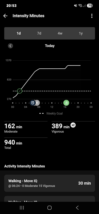 Can someone help me understand the root cause I have sync my watch and Garmin connect, I have got an extreme spike of calories expenditure and intensity minutes and I cant understand where it came from, in one day it's just a jump from today it jump from 158 to 1220 minutes for this week.