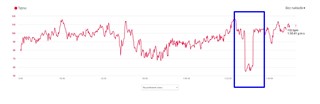 In the middle of the activity, at steady pace the heart rate drops abnormally by 40-50bpm. Sometimes it returns to normal level, sometimes not.