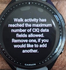 Note that the same happened when I tried to install to other activities that already had at least 1 CIQ datafield installed: it told me the max number was reached, and ALL the CIQ datafields were displaying the IQ icon.