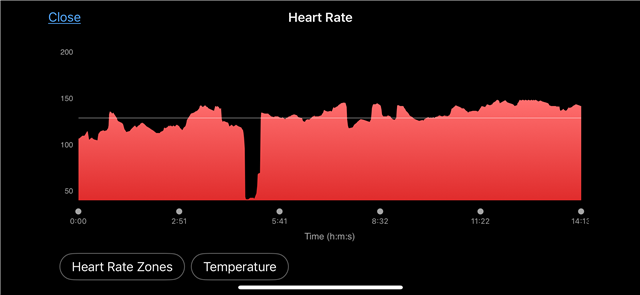 - A walk, HR dropped suddenly from 100 to 80 when climbing a hill, and recovered suddenly at the end of the hill.
