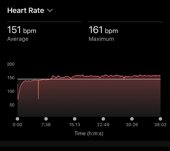 - A run, with threshold interval - HR was maybe 30 bpm too low for the first 16 minutes, with almost to response at all to the start of the interval.