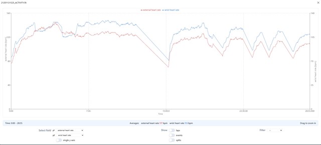 This seems to happen more when I start the activity with a heart rate more elevated than usual, and then reports around 115-125 when the HR as checked by a chest strap is around 165-170.