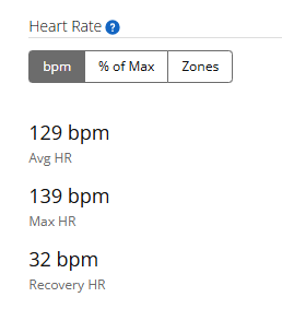 HR zone setup in garmin: LTHR 160 bpm, max HR 174, resting 52bpm.