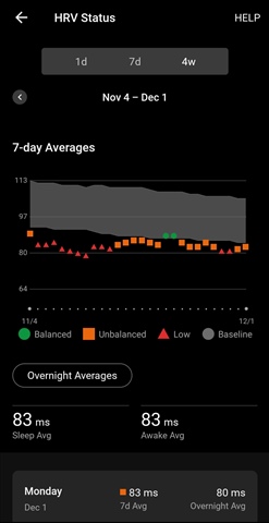 The values HRV have been dropping lower and lower each day since mid-September, when I installed the update 12.72 on my FR 970 watch. I feel great, I’m neither overtrained nor sick. Many watch users have reported the same issue with decreasing HRV. As a result, it keeps affecting other metrics as well, such as training readiness, etc.