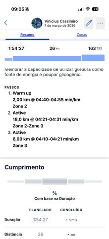 My coach builds my workouts in TrainingPeaks and each workout is divided into three parts: warm-up, main set, and cooldown. For each part, he defines a pace range that I should follow.
