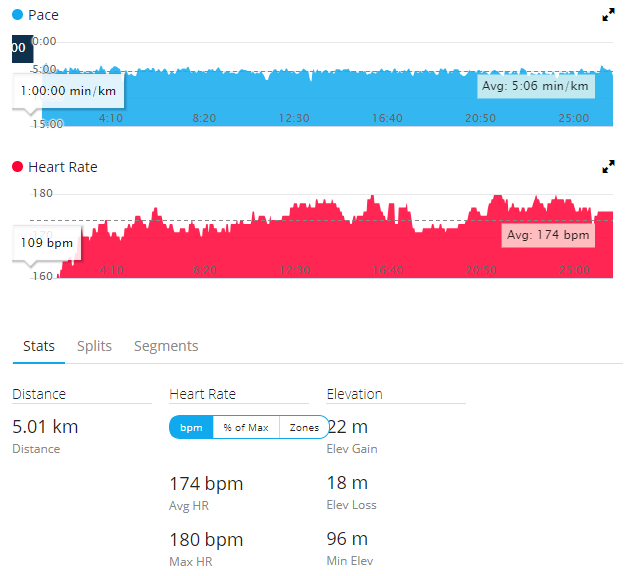 When using the mio for a 5k run my HR usually goes up to the 170 bpm range.