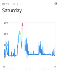 Here's an example HR chart for a recent day that did this. I usually charge while I shower after going for a run, so the lower peak below just over 150 is my actual run, using chest strap, and the red spike to 200 is a complete fabrication. Until this started happening this year, my calorie burn estimates were very consistent on days that I ran but on days when this spike happens they can be too high by 400-600 calories (20% or more).