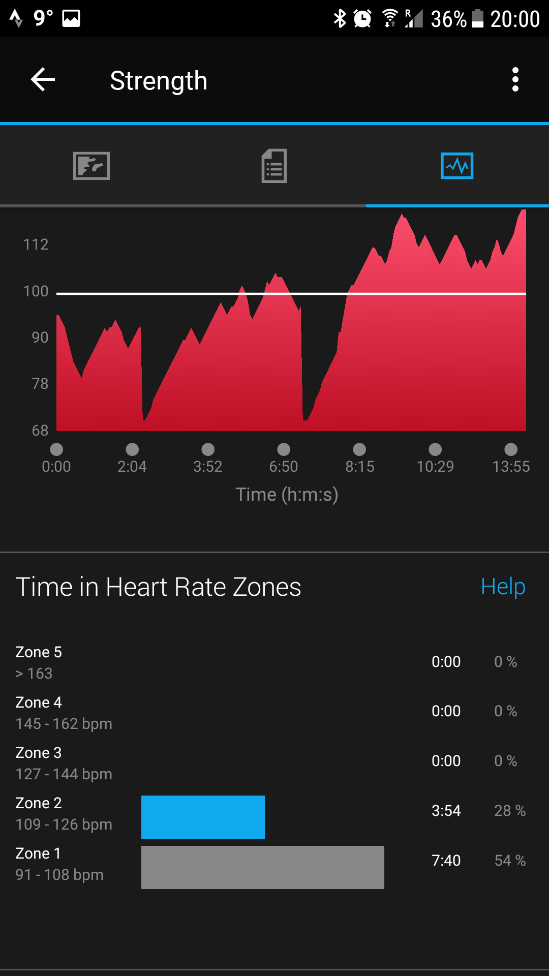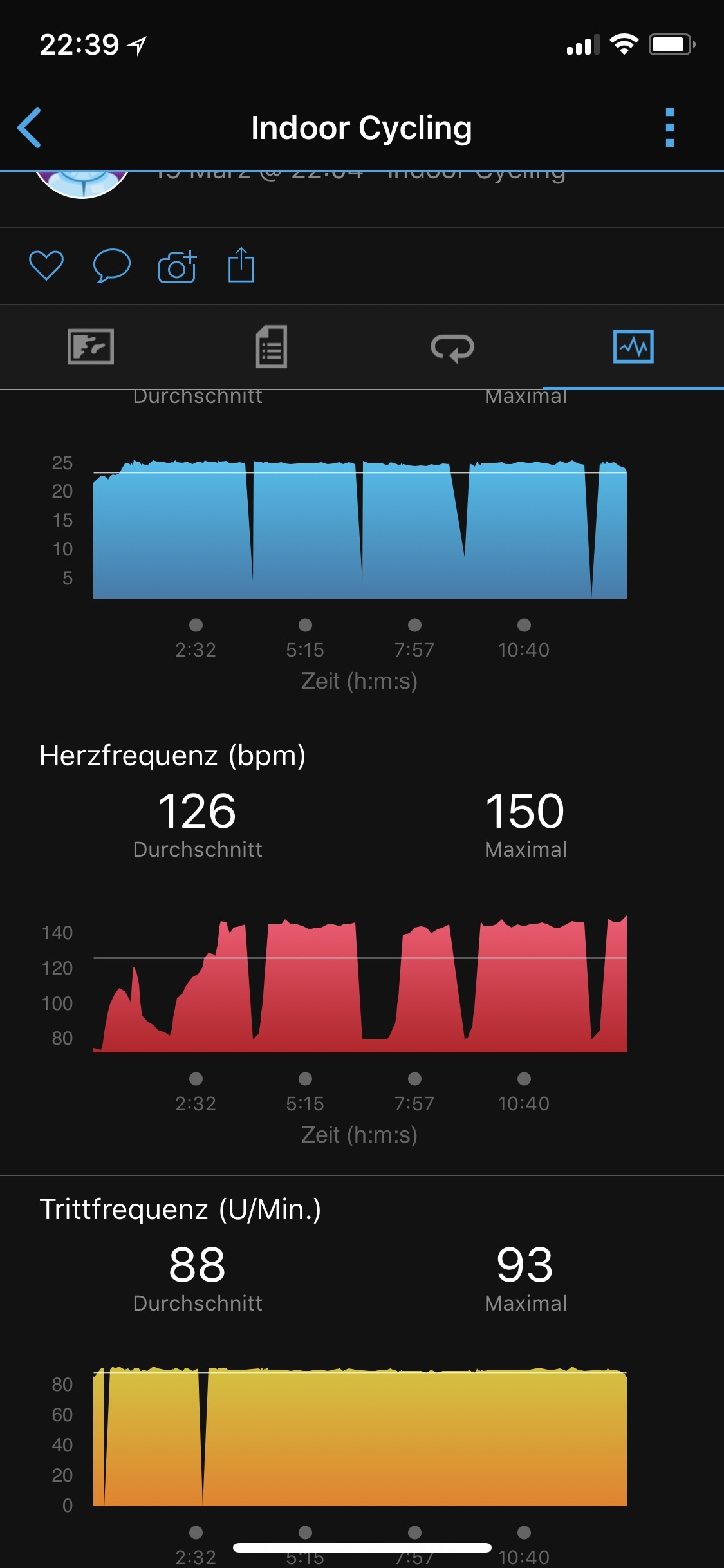 Later on I did an indoor cycling workout with the Garmin ANT+ speed sensor and using on board HR.
