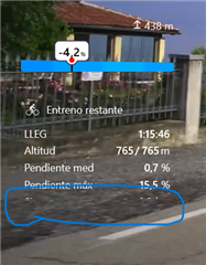 Tras la última actualización, en el Hub de información, a la izquierda de la pantalla, donde se ve el tiempo de llegada, datos de altitud etc.., no se ve la distancia al siguiente ascenso, se ve que el dato está, pero el marco no es suficientemente grande para que se vea completo.
